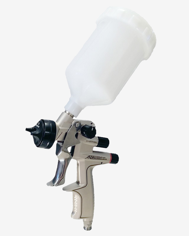 Profesionalni pištolj za farbanje sa gravitacionim dovodom boje, namenjen preciznom i ujednačenom nanošenju boja i lakova. Opremljen je gravitacionim lončetom zapremine 600 ml od izdržljivog najlona, sa integrisanim uređajem za sakupljanje kapljica i FV/S-5000 filterom boje, koji obezbeđuje čist i neprekidan protok materijala. Pištolj poseduje 3/8″M BSP navoj, kao i 1/4″M BSP okretni priključak za dovod vazduha, što omogućava jednostavno povezivanje i veću fleksibilnost u radu. Predviđena je mogućnost ugradnje digitalnog merača pritiska TMD1, a pištolj je dostupan sa CLEAR diznom prečnika 1.3 mm, pogodnom za precizne završne radove.