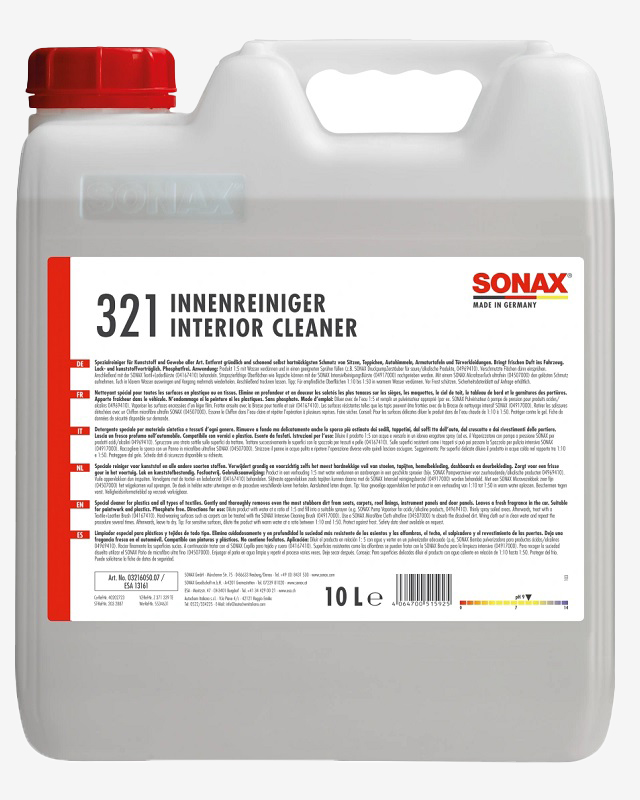 - Link proizvođača: Sonax PROFILINE 321 Interior Cleaner – Čistač enterijera vozila 10L