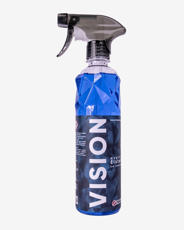 Upotreba: Ukoliko vam stakla nisu previše zaprljana dovoljno je samo da naprskate Vision na staklo i prebrišite sa mikrofiber krpom. Za spoljašnju stranu stakla naprskajte Vision direktno na staklo, prebrišite sa mikrofiber krpom, a zatim sa suvom stranom krpe (ili drugom krpom) ponovite brisanje i uglancajte do visokog sjaja. Za unutrašnju stranu stakla naprskajte Vision na mikrofiber krpu i sa tako vlažnom stranom prebrišite staklo, a zatim sa suvom stranom krpe (ili drugom krpom) ponovite brisanje i uglancajte do visokog sjaja. Ukoliko su stakla prilično zaprljana potrebno je da ih očistite prvo sa Titanium Pefectom, pa onda uglancate sa Visionom.